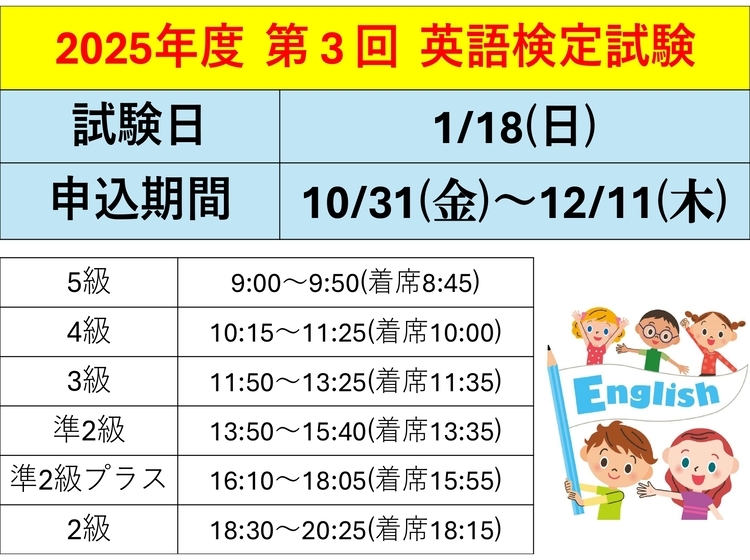 また、年明けには英語検定もあります。当塾も準会場になっているので受験する