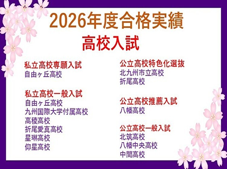 明治学園中学校・黒崎中学校・熊西中学校・穴生中学校・上津役中学校・引野中学校・則松中学校・八児中学校・花尾中学校・折尾中学校 など