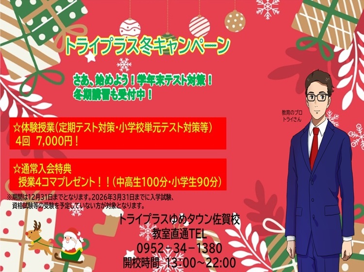 トライプラスゆめタウン佐賀校では、1月に引き続き、春の入会キャンペーンを