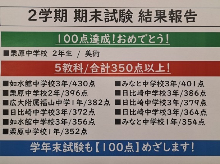 今回もテスト範囲の要点を絞り込んで対策準備をすることができました。