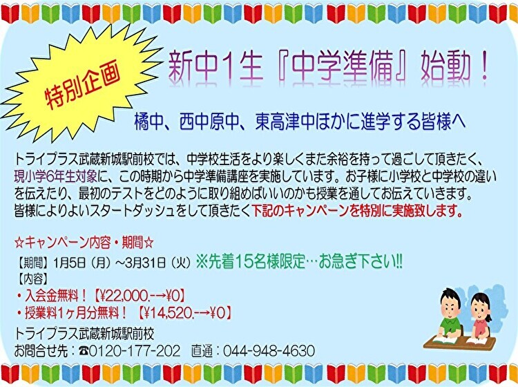 現小学6年生を対象に ”いよいよ中学生! 「中学準備」応援キャンペーン‼” を実施して参ります。