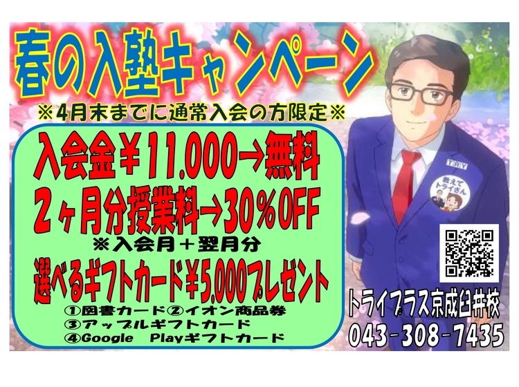 トライプラス京成臼井校は安心安全にお通いいただける環境を整えております。