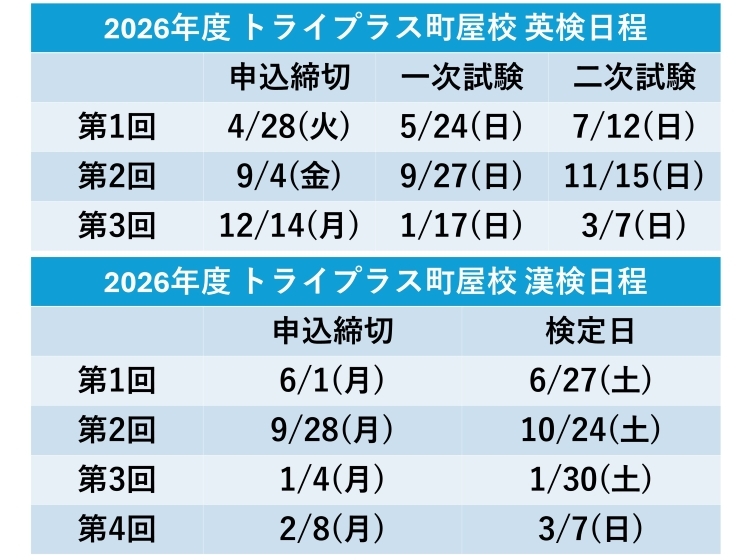 トライプラス町屋校の冬期講習、定期テスト対策や英検対策など、無料学習相談・体験授業も受付中です。