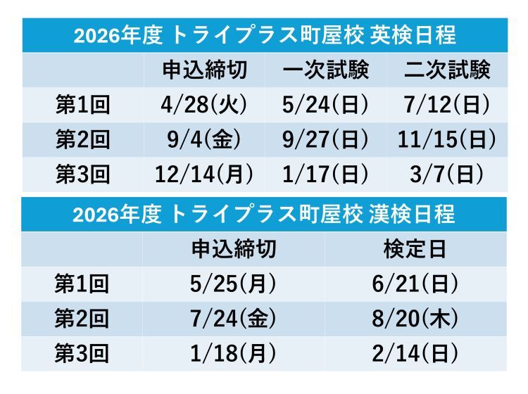 テスト対策コースや無料学習相談・体験授業を受付中です。お気軽にお問合せください。