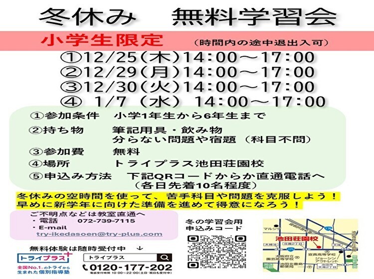 教室直通電話 072-739-7115(平日16時〜22時、土曜日13時〜22時))