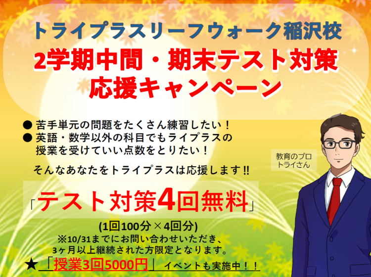 ぜひトライプラスのテスト対策イベントをご活用ください!